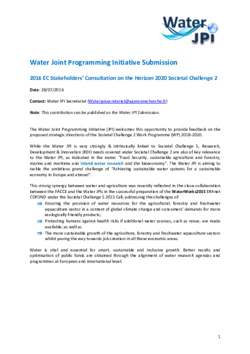 Consultation on H2020 Societal Challenge 2 WP 2018-2020