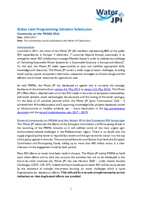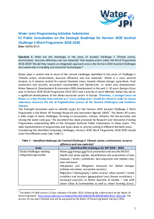 Introduction to the Water JPI SRIA 2.0