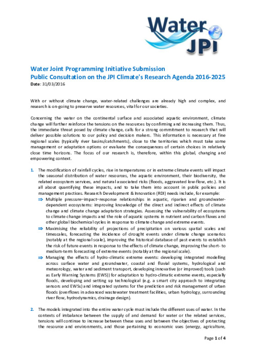 Summary of the Vision Document for the Water Joint Programming Initiative