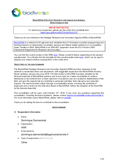Consultation on BiodivERsA SRIA