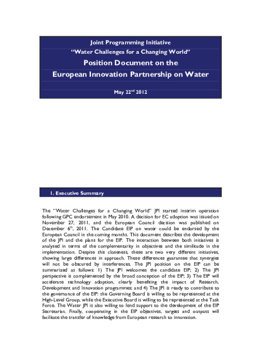 Position document European Innovation Partnership on Water