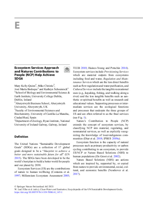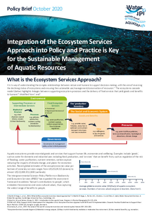 Integration of the Ecosystem Services Approach into Policy and Practice is Key for the Sustainable Management of Aquatic Resources 2020
