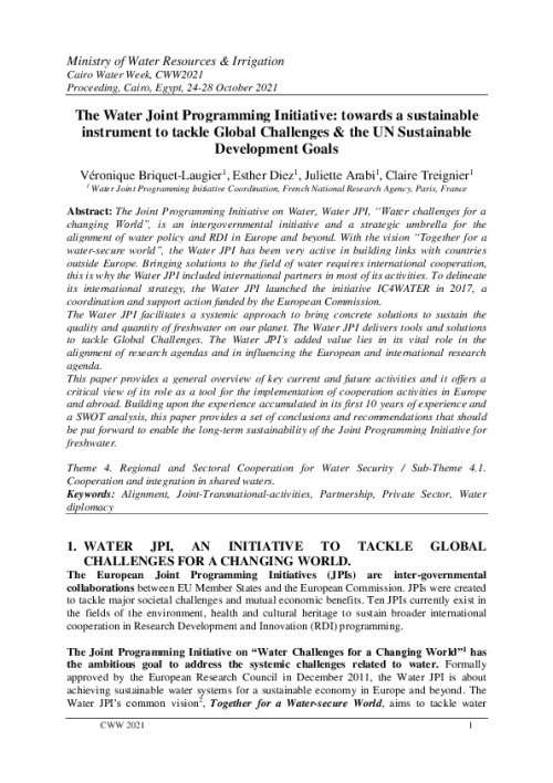 The Water Joint Programming Initiative: towards a sustainable instrument to tackle Global Challenges & the UN Sustainable Development Goals 2021