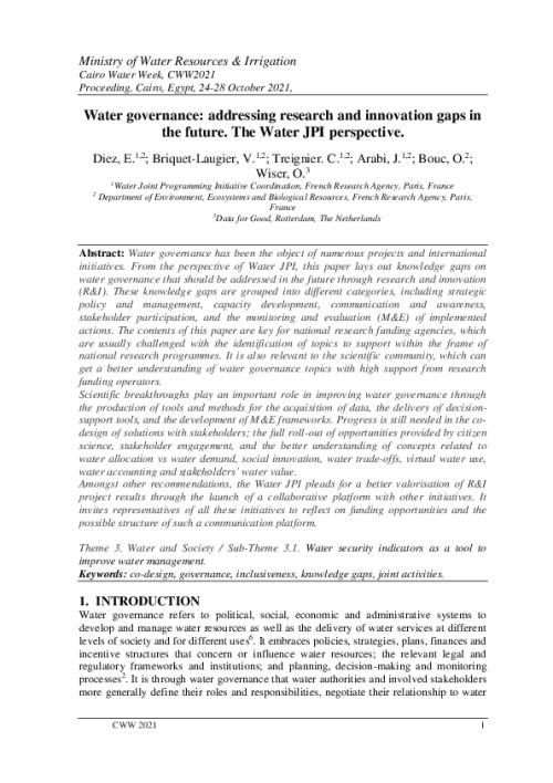 Water governance: addressing research and innovation gaps in the future. The Water JPI perspective 2021