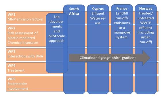 NANO-CARRIERS identifies and evaluates a currently unrecognised research priority that needs to be addressed at international level. The risk from the export of MNP-associated chemical additives, CECs and ARGs with treated and untreated urban wastewater effluents has received little attention despite the potential hazard to humans and the environment. As such, our research will provide impacts in the scientific, socio-economic and policy domains. Results from this project are expected to directly influence urban and wastewater management and more precisely identify the possible need for development of mitigation strategies and adoption of additional, new or alternative wastewater treatment options, or whether existing treatment procedures are sufficient. The transnational added value of the NANO-CARRIERS collaboration is related to the differing geographical/climatic, environmental and socio-economic factors that are evidently described in the proposed scenarios of this project set in South Africa, the tropics, the Mediterranean, Northern Europe or the Arctic. Obviously, the risk and resulting need for and type of management and mitigation strategies will differ for the different geographical locations and this is tackled in our project. NANO-CARRIERS will evaluate exposure and risk to human health and the environment and propose mitigating actions and specifically focussed on wastewater treatment and thereby provide society with information, tools and options for the efficient management of MNP in urban wastewater streams. The involvement of stakeholders with direct need for the data and knowledge gathered during this project will ensure and facilitate (i) rapid implementation of mitigation initiatives, (ii) adequate lobbying and raising awareness (of whether a risk is identified or not) and (iii) interaction with governmental institutions with the aim to influence legislation and contribute knowledge toward regulatory measures.